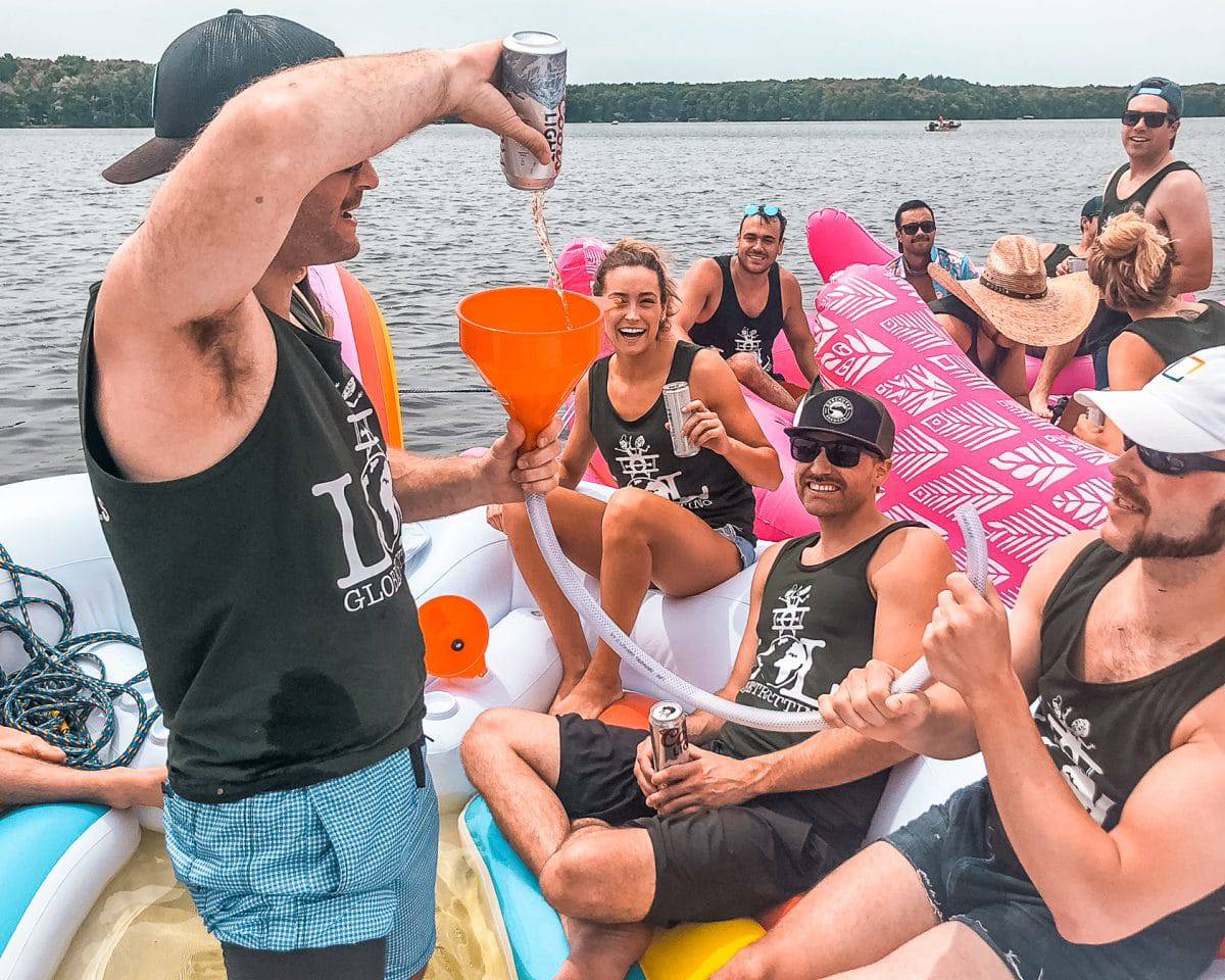 Our personal favorite water activity is tubing behind a boat. No, no, no, I’m not talking about some mundane boat pulling a round disk with one person behind it going 20 miles per hour doing soft S-curves. If that’s you, you have my respect, but not my admiration.