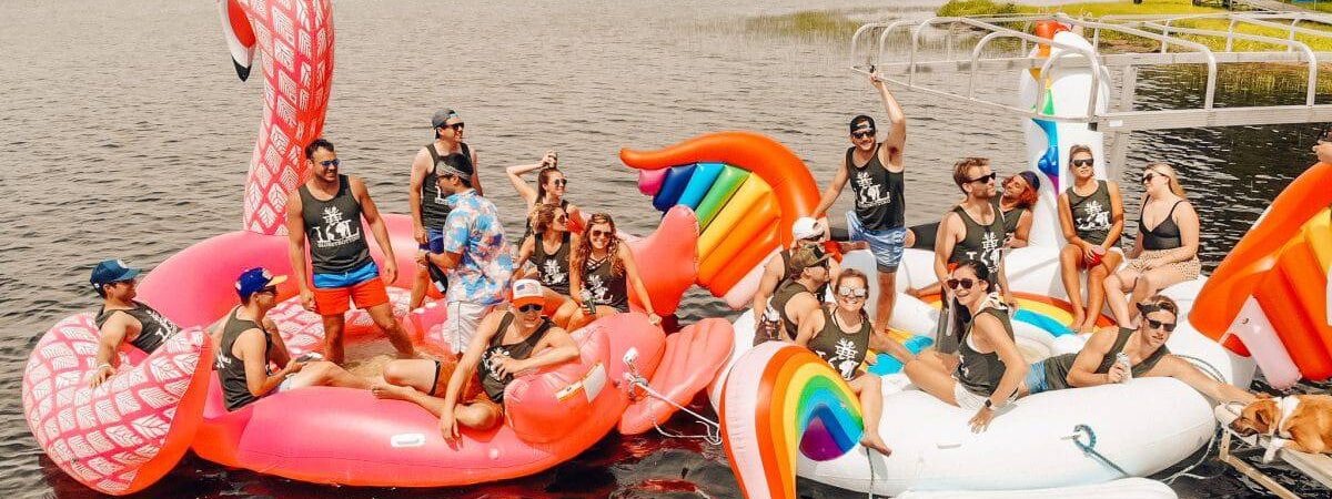 Our personal favorite water activity is tubing behind a boat. No, no, no, I’m not talking about some mundane boat pulling a round disk with one person behind it going 20 miles per hour doing soft S-curves. If that’s you, you have my respect, but not my admiration.